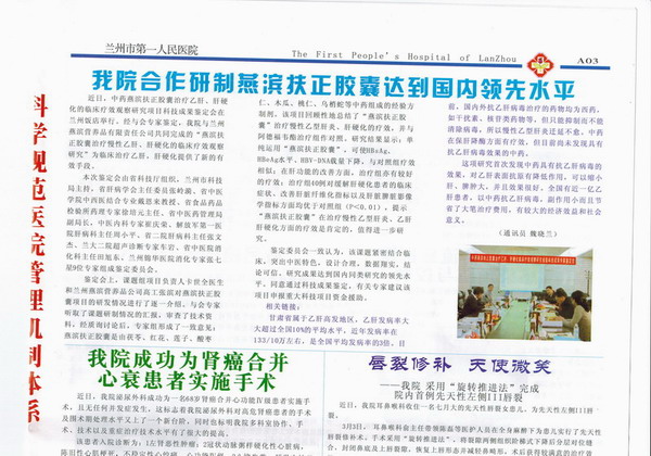 兰州市第一人民医院(三甲)院报,对燕滨扶正胶囊的报道(照片)